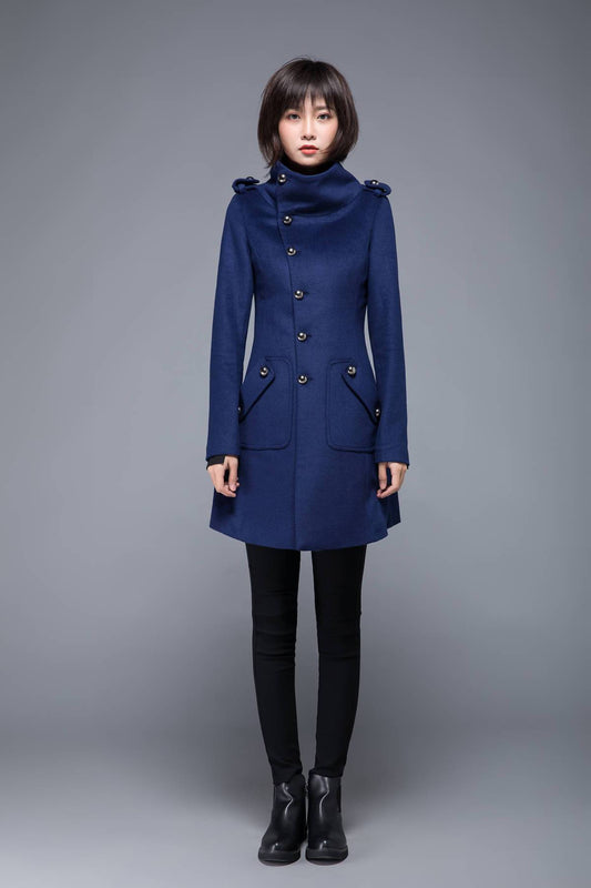 warm winter coat, blue coat, wool coat, womens jackets, midi jacket, coat, jackets, winter coat, fitted coat, pockets coat, C1216
