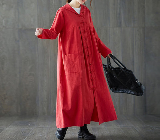 Casual Hoodie Maxi Linen Trench Coat C1985