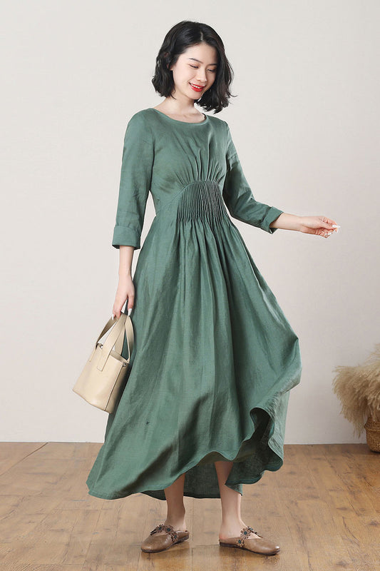 Green Casual Linen Maxi Dress C3269