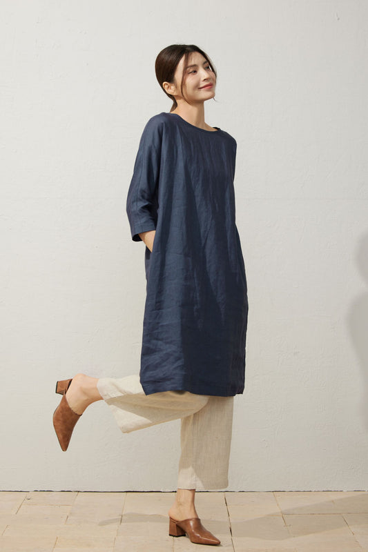 Elegant Navy Blue Linen Dress C3927