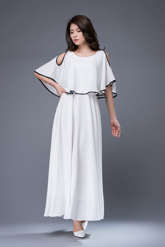 White prom summer wedding chiffon dress c874