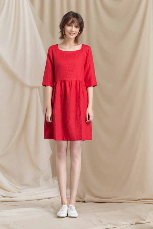 Shift Linen simple Loose dress C4804