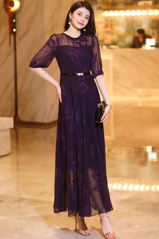Purple prom long chiffon dress women C4931