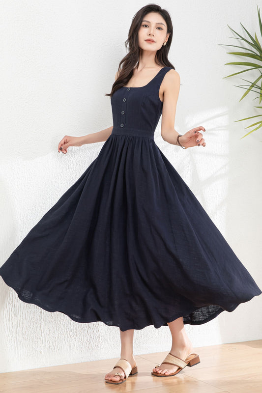 Sleeveless Linen Pinafore Dress C4763