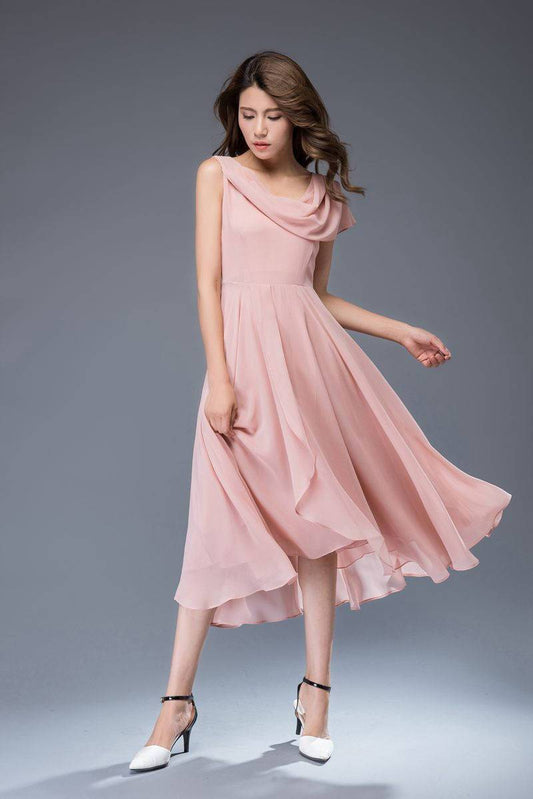 Pink bridemaid prom chiffon dress women C4863