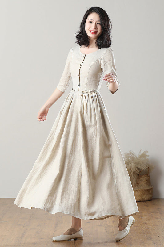 Women's Summer Pleated Linen Dress C3304