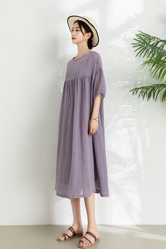 Women's Summer Loose Ramie Dress C3292