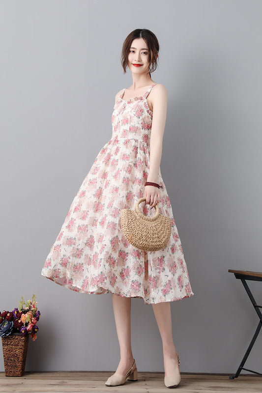 Summer Swing Floral Midi Sun Dress For Women C232001