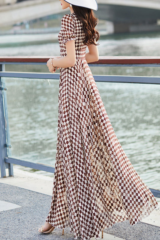 Plaid chiffon print dress women C4099
