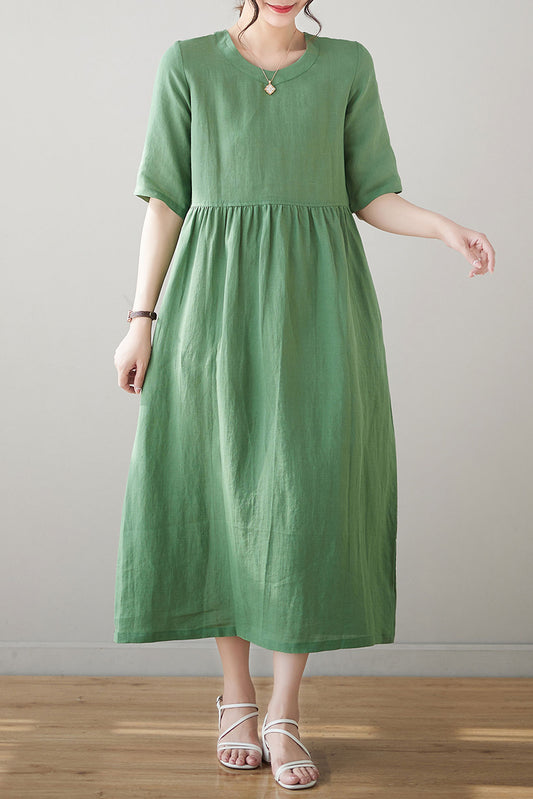 Summer Green Midi Linen Dress C3184