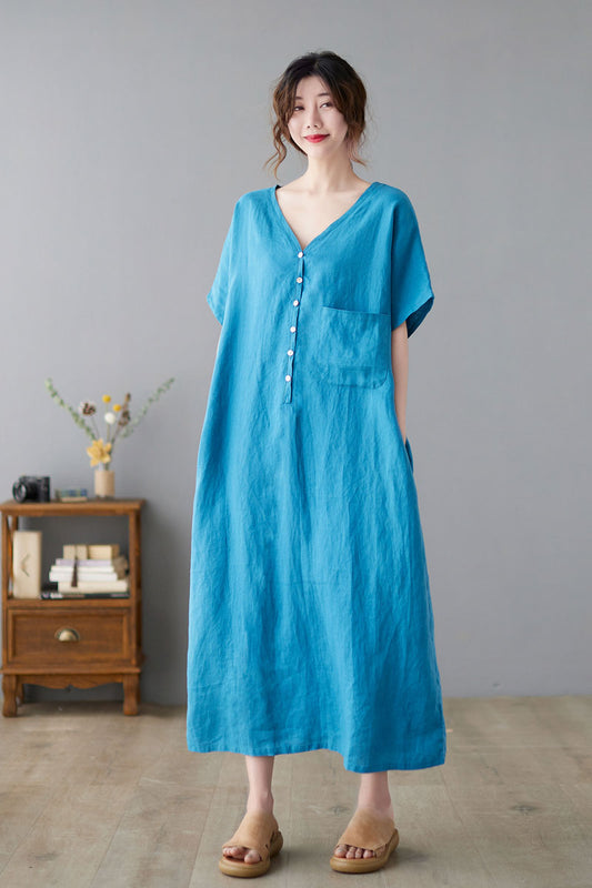 Simple Summer Linen Dress Women C224601