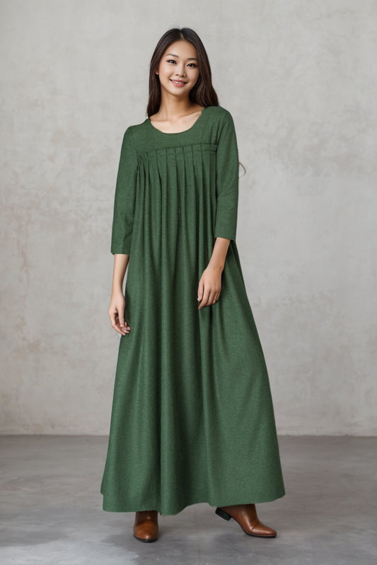 Dark Green Midi Wool Dress C4528