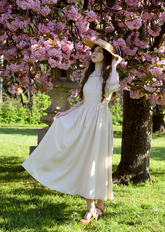 Spring and Summer Cottagecore Linen maxi Dress C2852