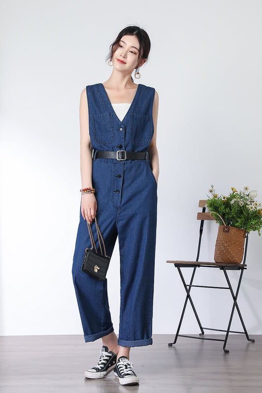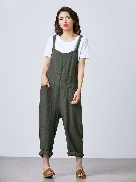 Women Spring Summer Casual Cropped Linen Overalls C2899
