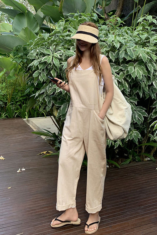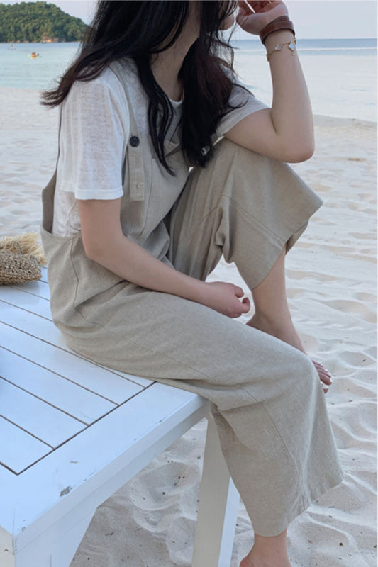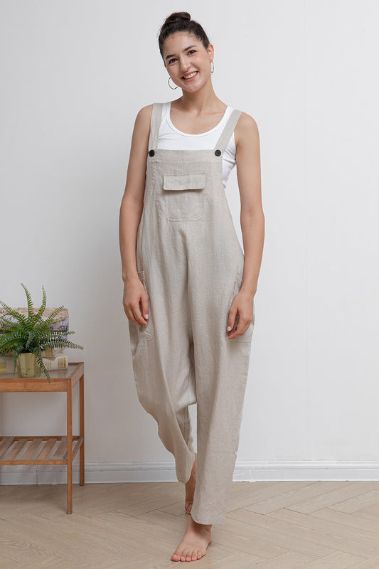 Casual Linen Jumpsuits in Natural Linen Color C2391