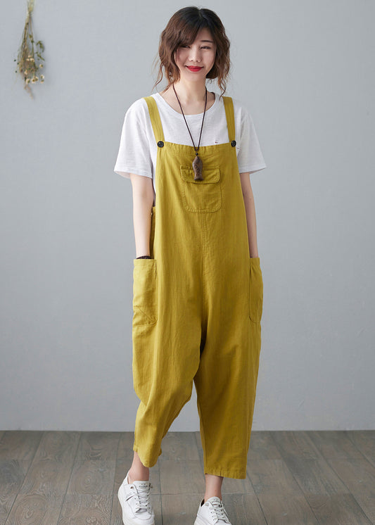 Yellow Casual Cropped Linen Jumpsuits C2100
