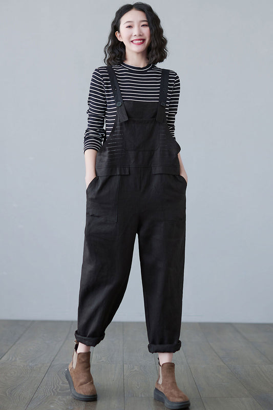 Black Causal Linen Overalls Women C2493