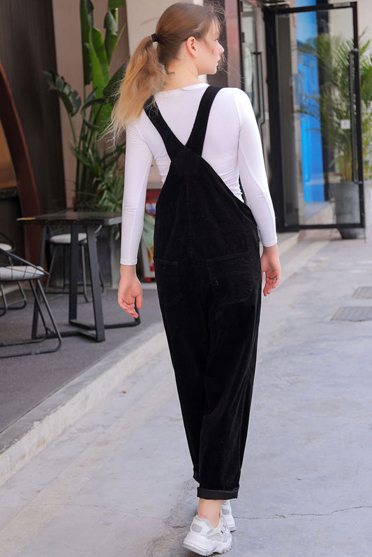Black Corduroy Jumpsuit Women C2760 CK2200622