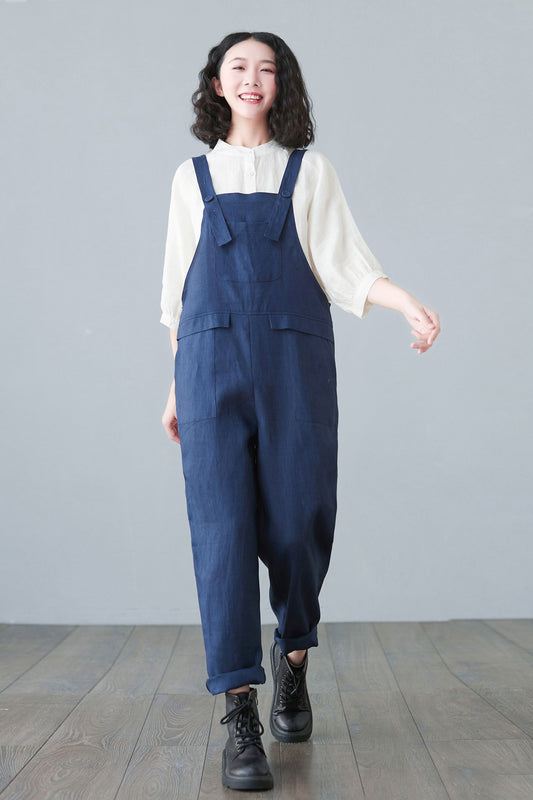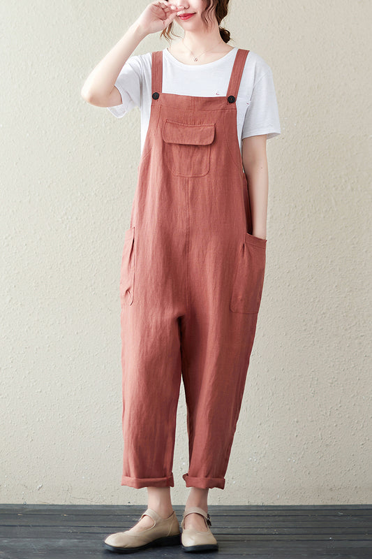 Loose fit Linen Jumpsuits Women C2498