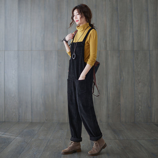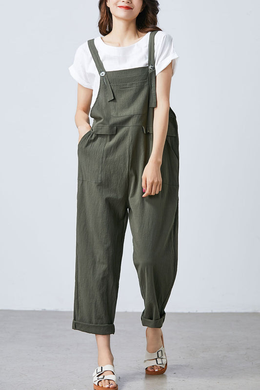 Bib Pocket Front Harem Overalls, womens linen pants C1469