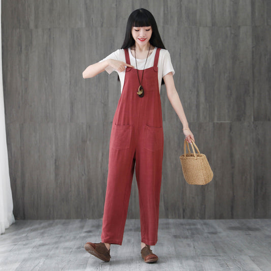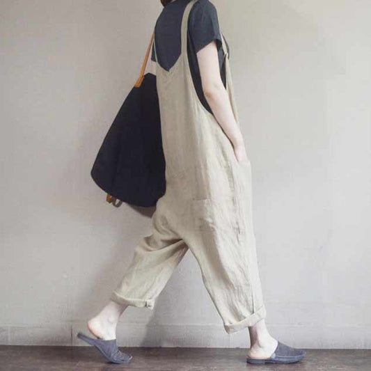 Women Casual Linen Jumpsuits Overalls Pants C1692