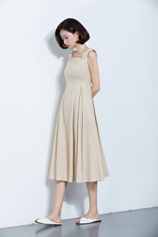 Beige Linen Dress, Suspender Dress, Overall Dress, Long Dress, Summer Dress, Women's Dress, midi dress, sleeveless dress C1140