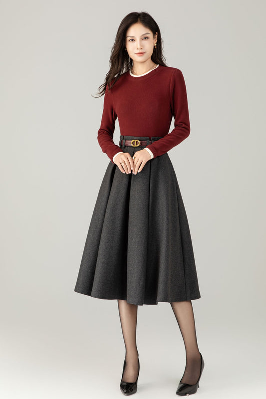 High waist a line gray winter wool skirt C5240