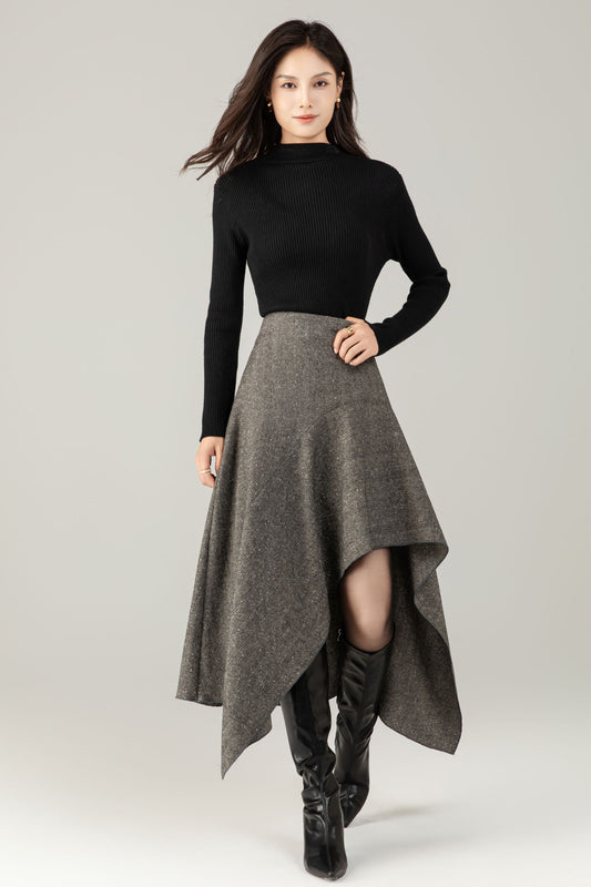 Gray irregular winter wool skirt women C5250