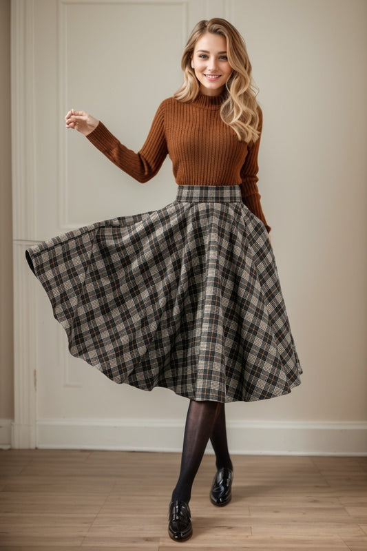 Plaid winter skater wool skirt women C4451