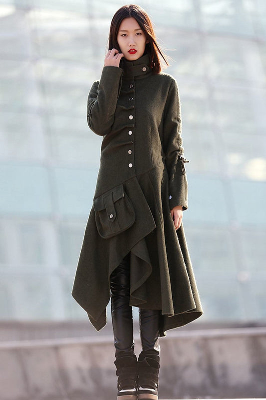 Maxi coat, wool coat, long black coat, dress coat, winter warm coats, womens coats, asymmetrical coat, women jacket, girls coat C1029