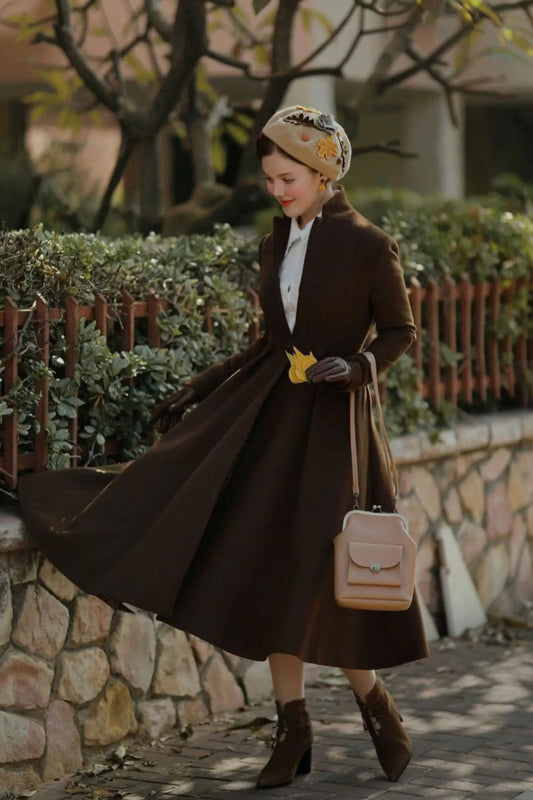 Brown Winter Coat - Cashmere Wool Blend Womens Autumn Winter Midi Swing Coat with Chunky Large Cowl Collar & Side Pockets C142