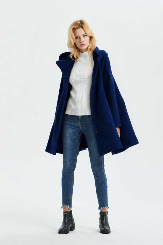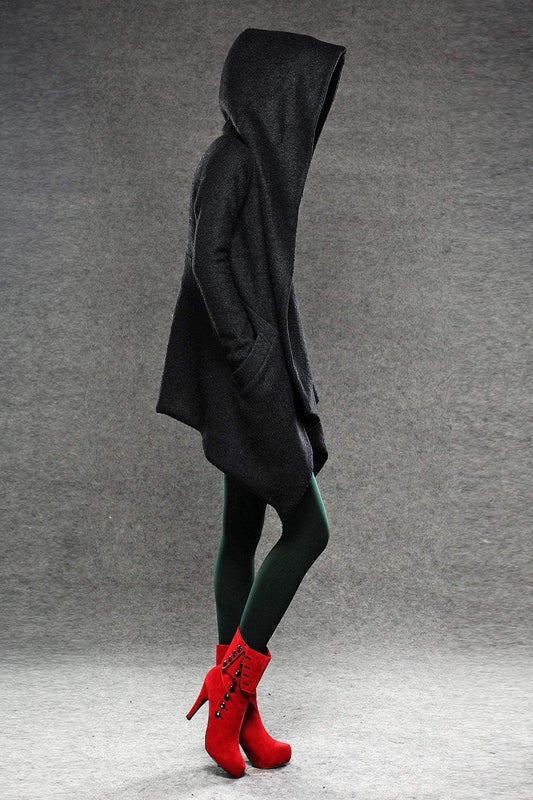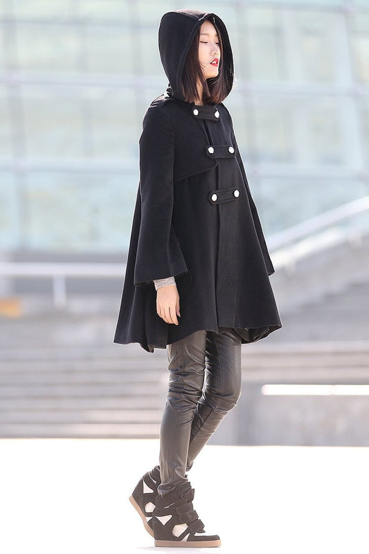 Black Cape coat, wool cape, winter cape, Black capes, hoody cape, womens cape, midi cape, wool cape, plus size cape, warm cape C168