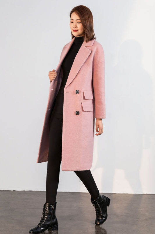 Double breasted pink winter wool coat C1746