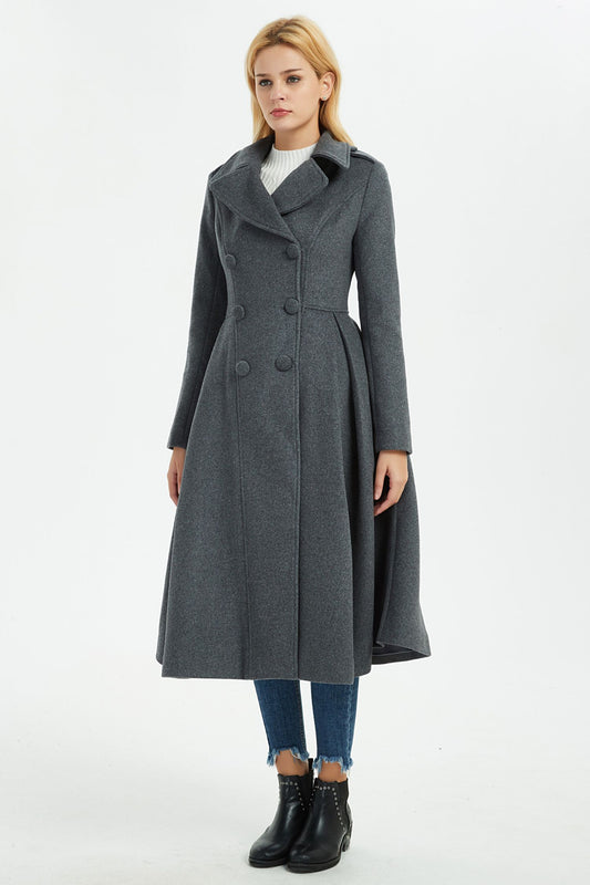 Double breasted long winter gray wool coat C1370