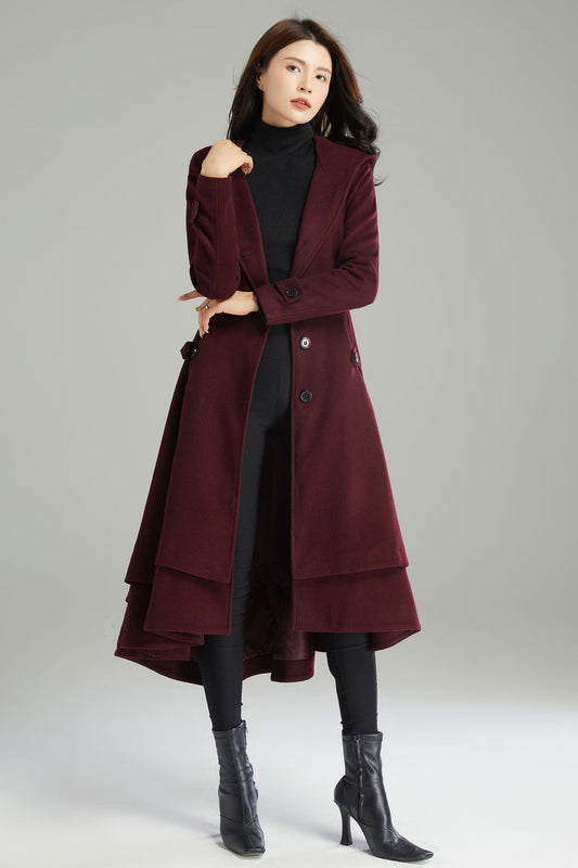 Burgundy Winter Swing Wool Coat C1792