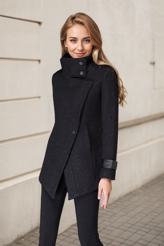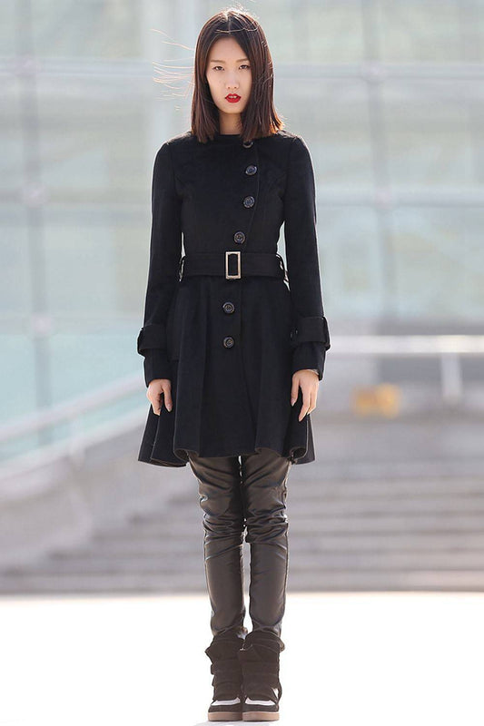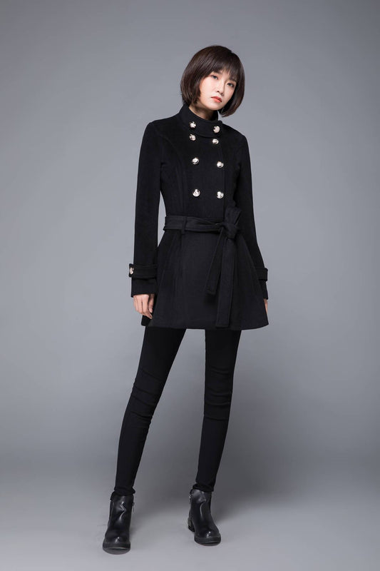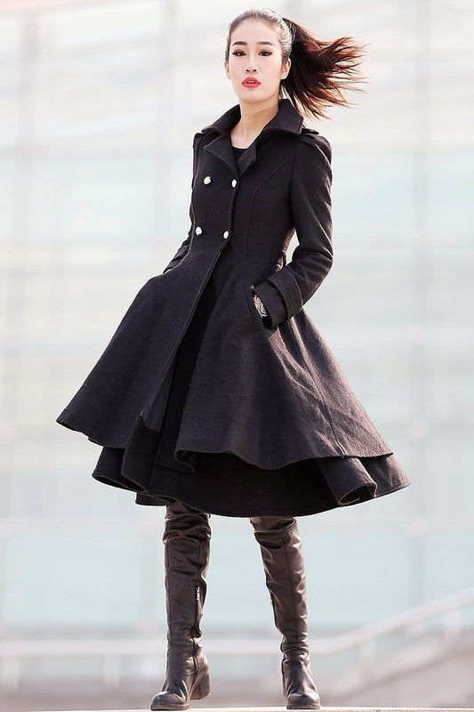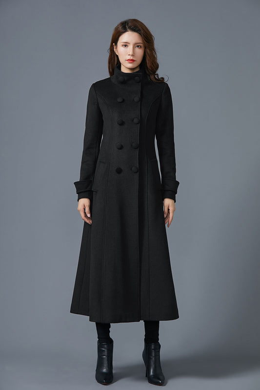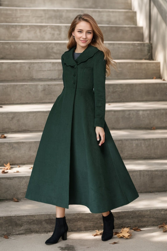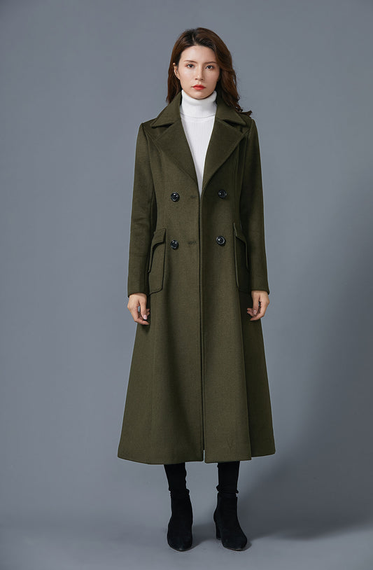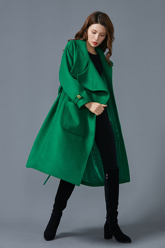 Lapel collar long wool womens winter coat coat with pockets warm wool fashion coat C1627