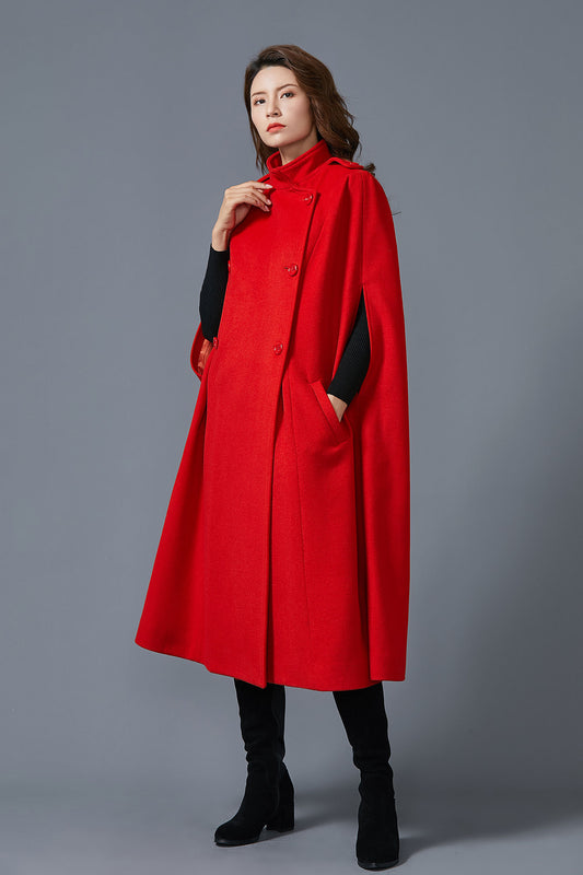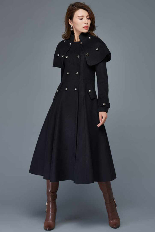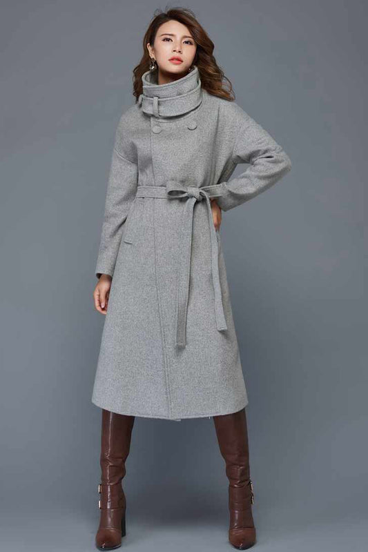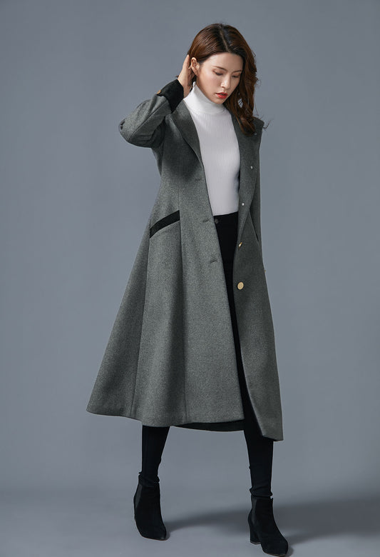 Gray long hooded wool coat handmade warm winter coat womens coat C1624