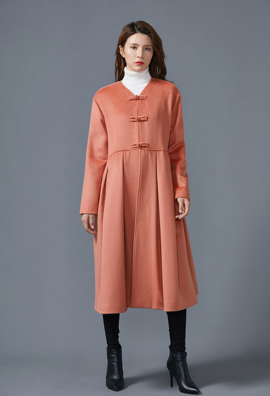 Chinese woolen Pink coat vintage winter coat coat with pockets handmade womens wool coat C1622