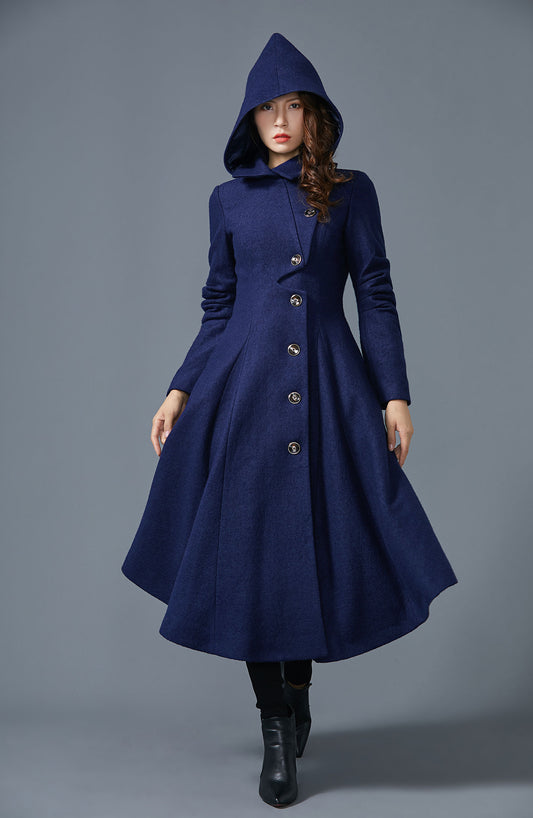 Handmade Hooded Maxi Asymmetrical Wool Coat Women C4402