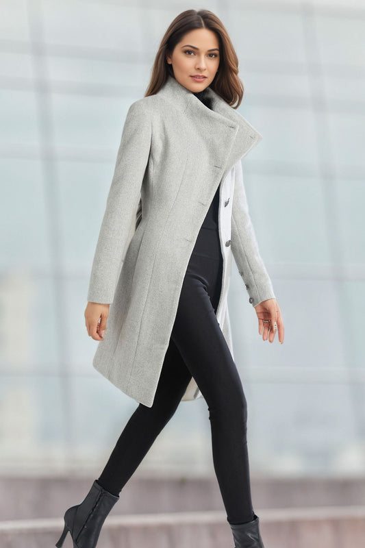 Gray Asymmetrical Wool Coat C4960