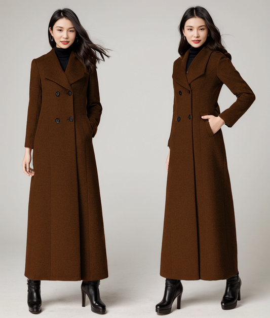 Double breasted wool maxi coat C4401
