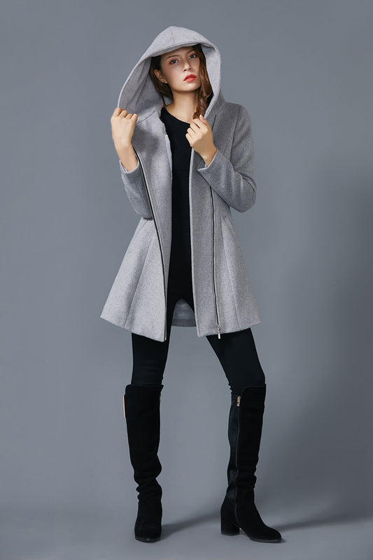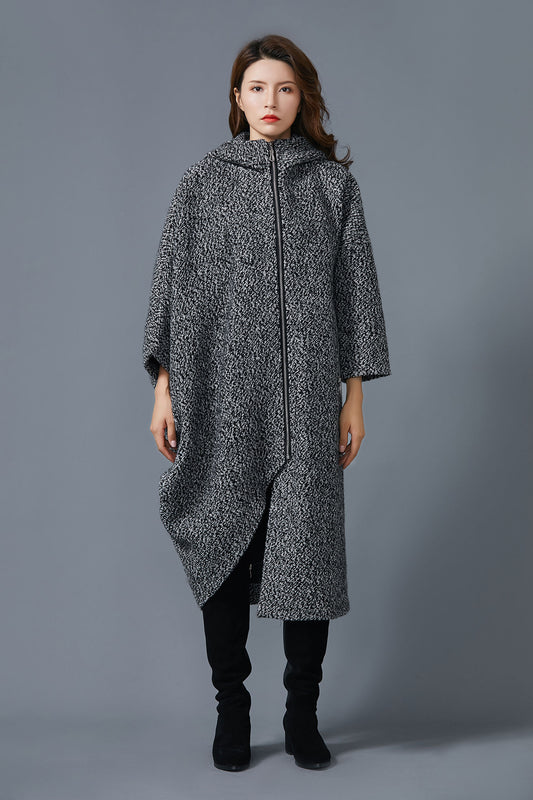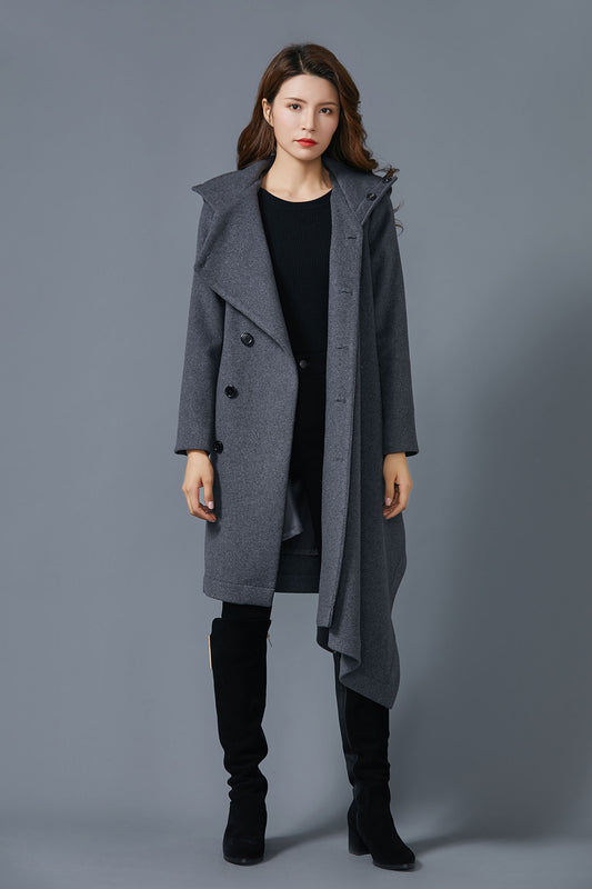 Gray wool coat Asymmetric wool coat irregular coat hooded coat handmade coat C1603