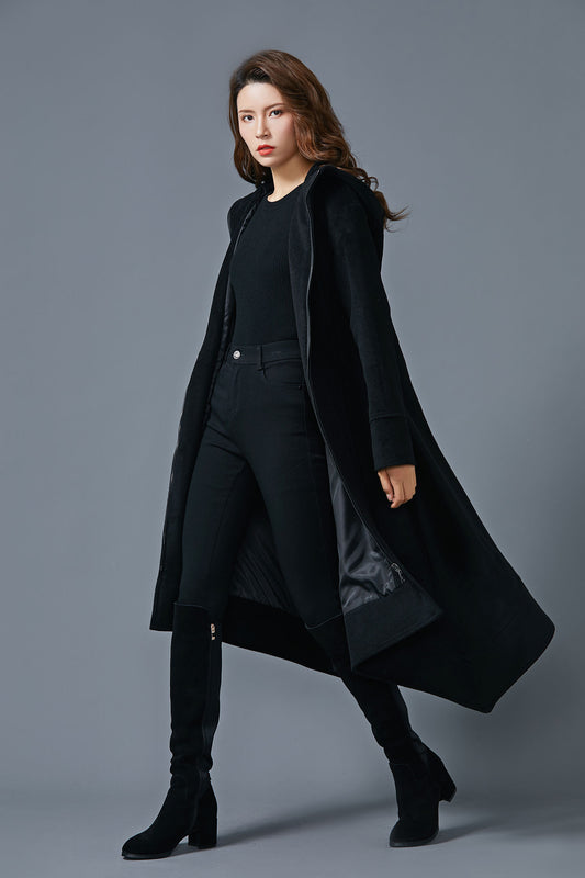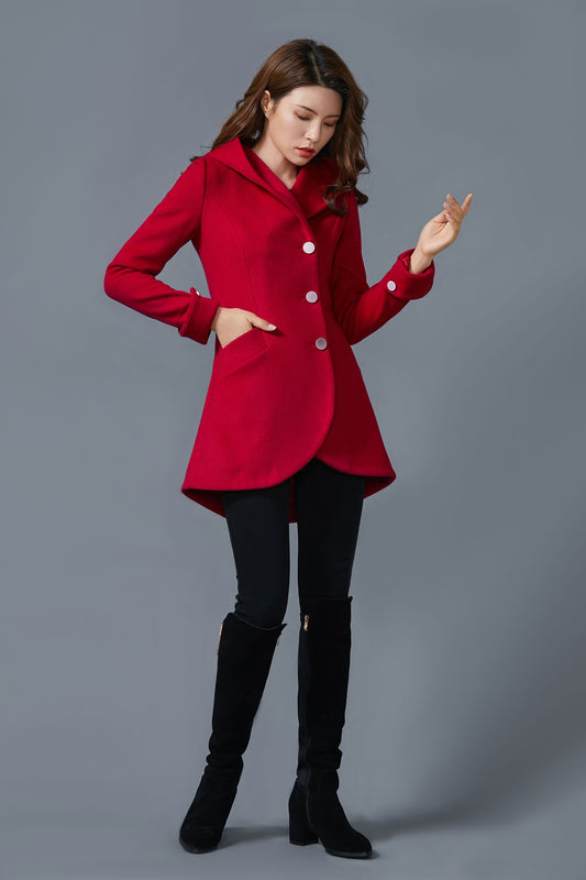 Asymmetric wool coat Hooded coat long wool coat handmade coat warm wool coat C1604