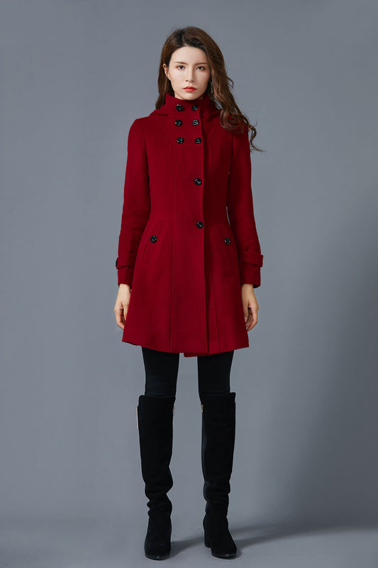 Mini wool winter coat coat with pockets warm long sleeve coat wool jacket C1591