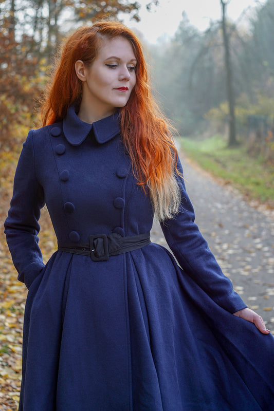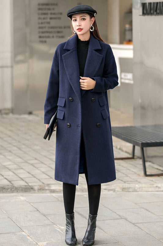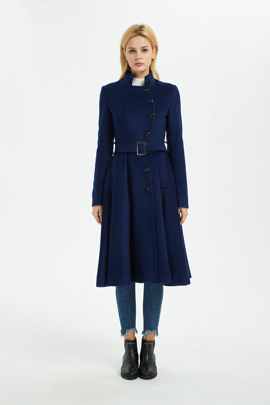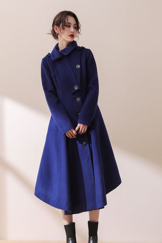 Asymmetric Hooded wool jacket coat In Blue C1780