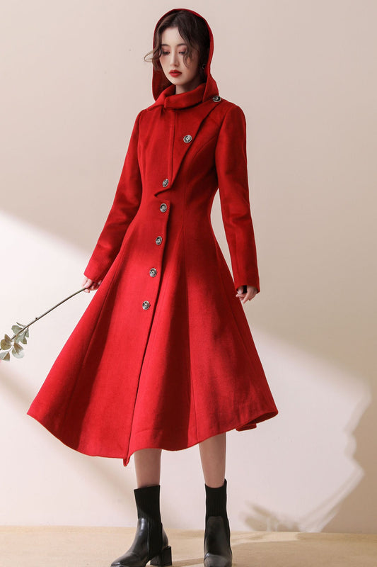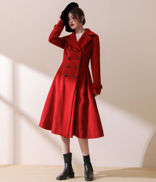 Red Cape coat, Vintage Inspired Women's Cashmere Wool Cape Coat C253901