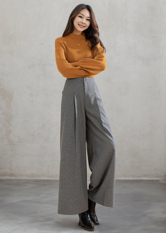 Wide Leg Wool Pants Women Wool Palazzo Pants C4460
