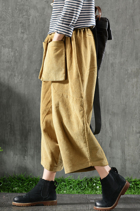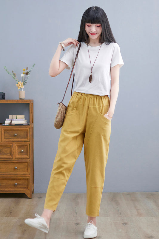 Yellow Casual Linen Cropped Pants C2257#YY05127