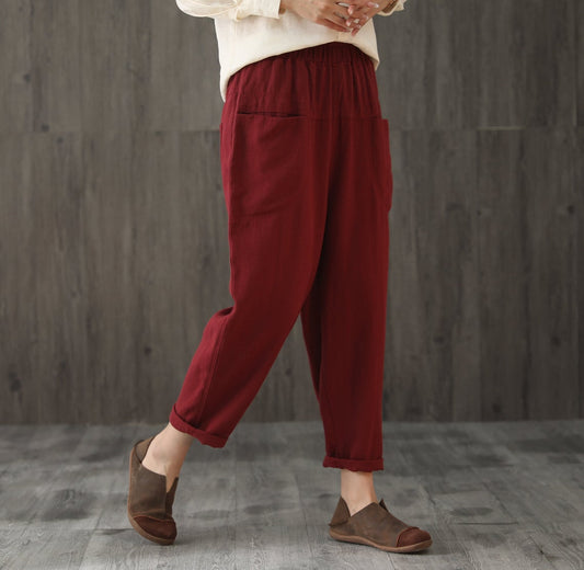 Women Summer Harem Linen Plus Size Casual Pants C2800
