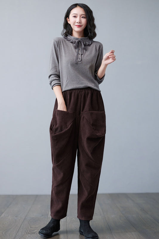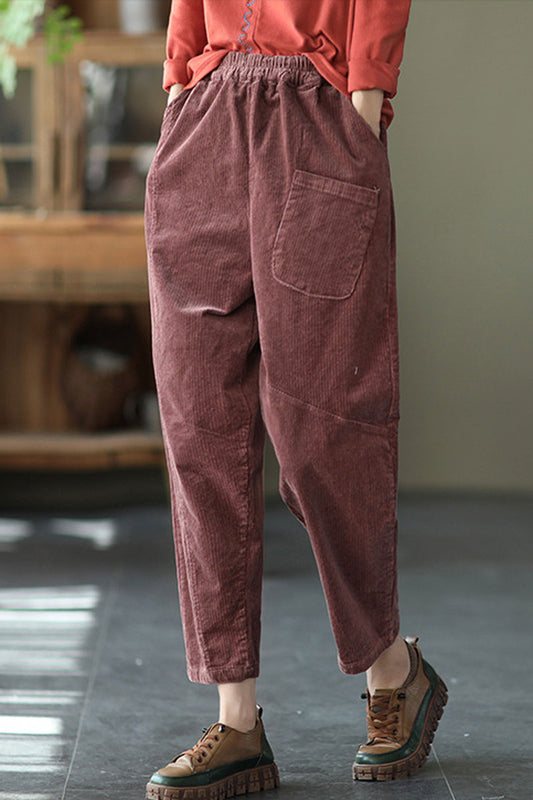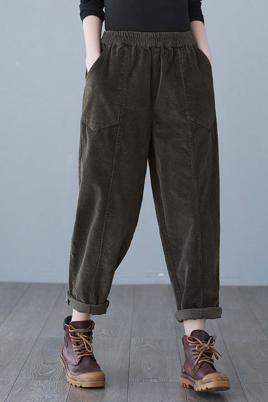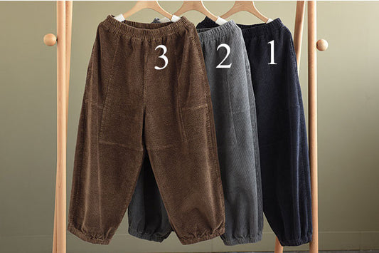 Retro Winter Thicken Corduroy Pants Women, Elastic Waist Harem Pants C251001